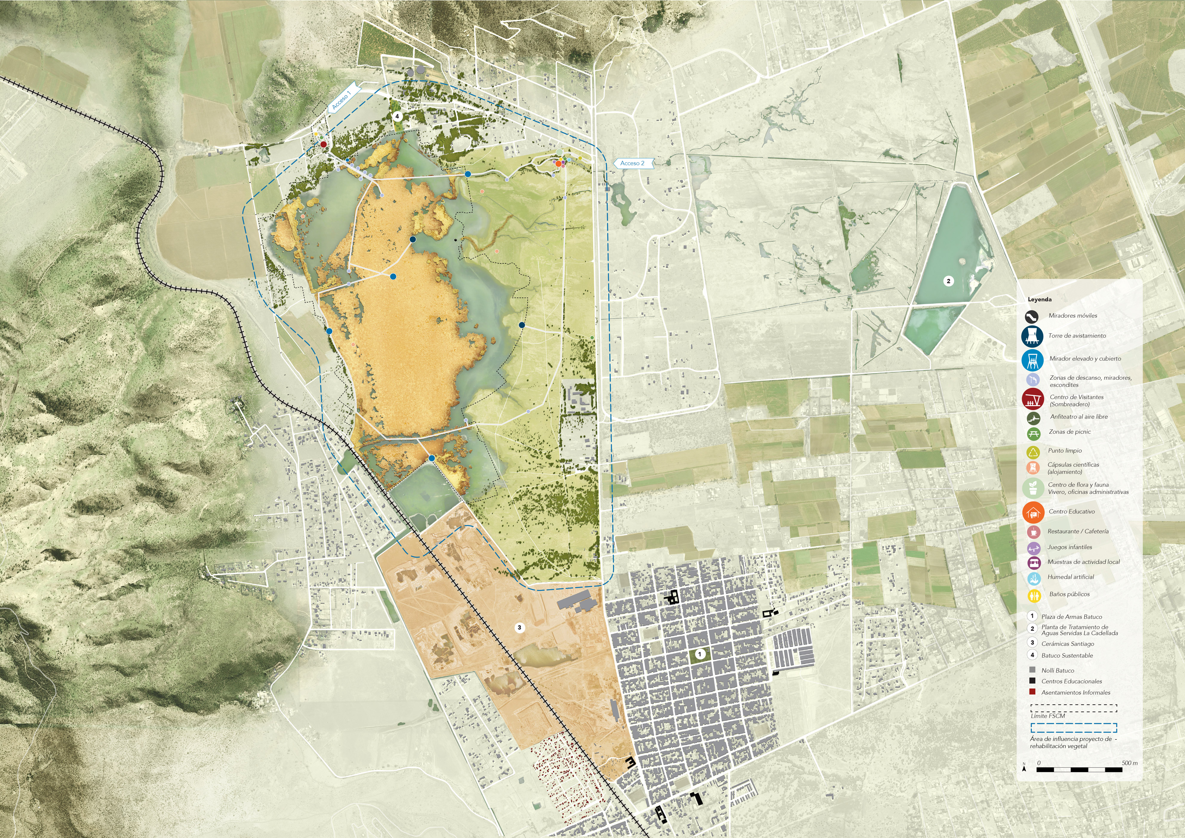 La inclusión de la laguna de Batuco dentro de los 40 humedales prioritarios a ser protegidos a escala nacional, enunciados en el Plan Nacional de Protección de Humedales 2018-2022 desarrollado por el Ministerio del Medio Ambiente, y la reciente declaratoria de 274 ha de la laguna como Santuario de la Naturaleza (Noviembre, 2021), impulsan la necesidad de definir una visión para la laguna y determinar herramientas que orienten su gestión y protección en el tiempo. Su desarrollo surge de la respuesta a una llamado hecho por la Fundación San Carlos de Maipo quien -como propietario y protector- busca avanzar sobre un Plan de Manejo y Acción ya desarrollado, para proyectarlos en un Plan Maestro que permita establecer criterios para consolidar el humedal como un parque natural, asegurando su conservación y cabida al desarrollo local a través de programas educativos que integren y capaciten a la comunidad en su cuidado.