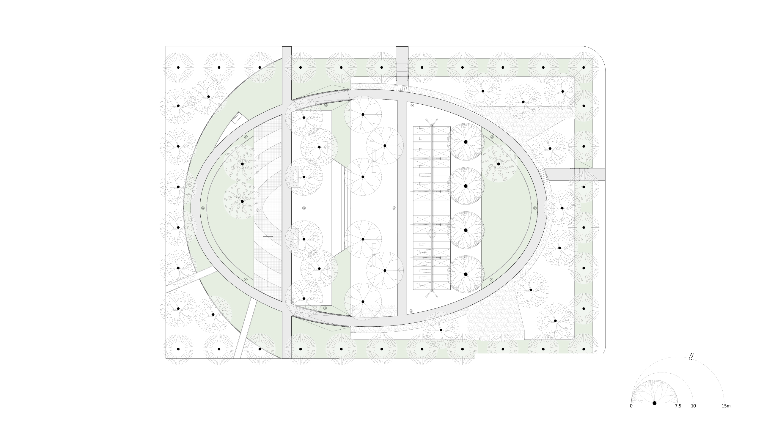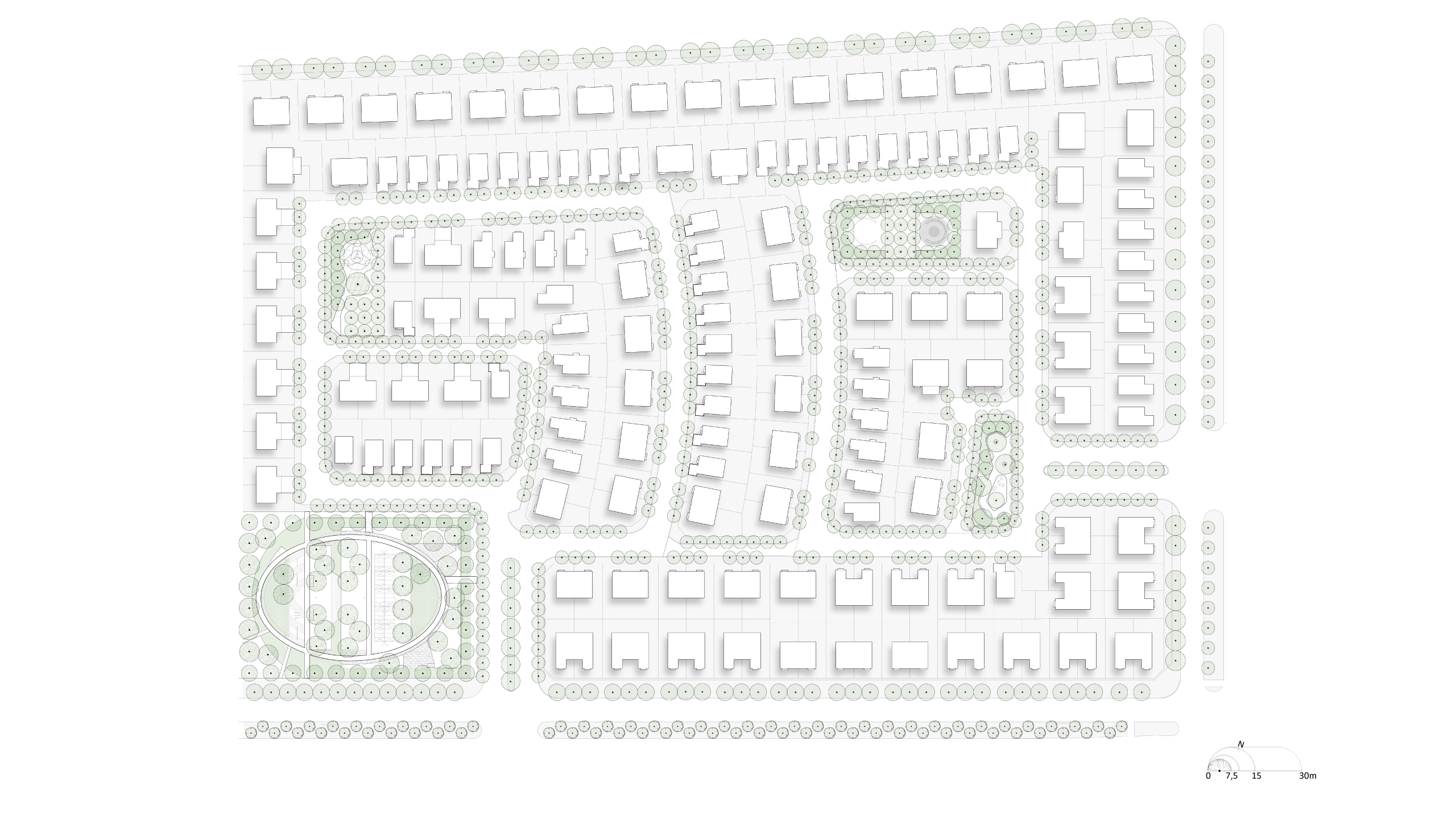 Aquí, han posibilitado pensar una intervención de espacio público como un sistema de cuatro piezas de paisaje urbano de diferentes tamaños, y que responden a diferentes necesidades y usuarios bajo diversas tipologías de espacio público: 1. Plaza de Encuentro; 2. Punto de Deporte; 3. Plaza Local; 4. Parque Inundable de Integración Vecinal.